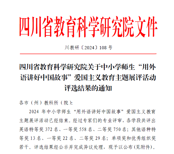 喜报!我校学子在四川省2024年中小学生“用外语讲好中国...